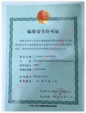 通过ISO9001质量体系认证、 ISO14001环境体系认证、 OHSAS18001职业健康体系认证, 商务部 AAA级企业信用评定,通过 CE和辐射安全认证,多项国家专利。